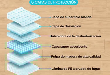 Nuestros empapadores están diseñados con tecnología de absorción rápida, capaz de retener la humedad de manera instantánea y neutralizar los olores. Su hogar se mantendrá limpio y fresco, incluso en los días de mayor actividad.